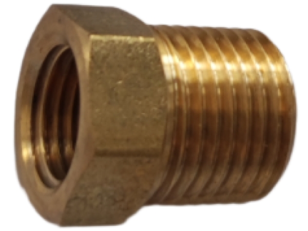 This brass reducing bushing is designed to adapt metric threaded connections to BSPT threaded ports. It allows easy connection between different thread standards in piping and fluid systems.